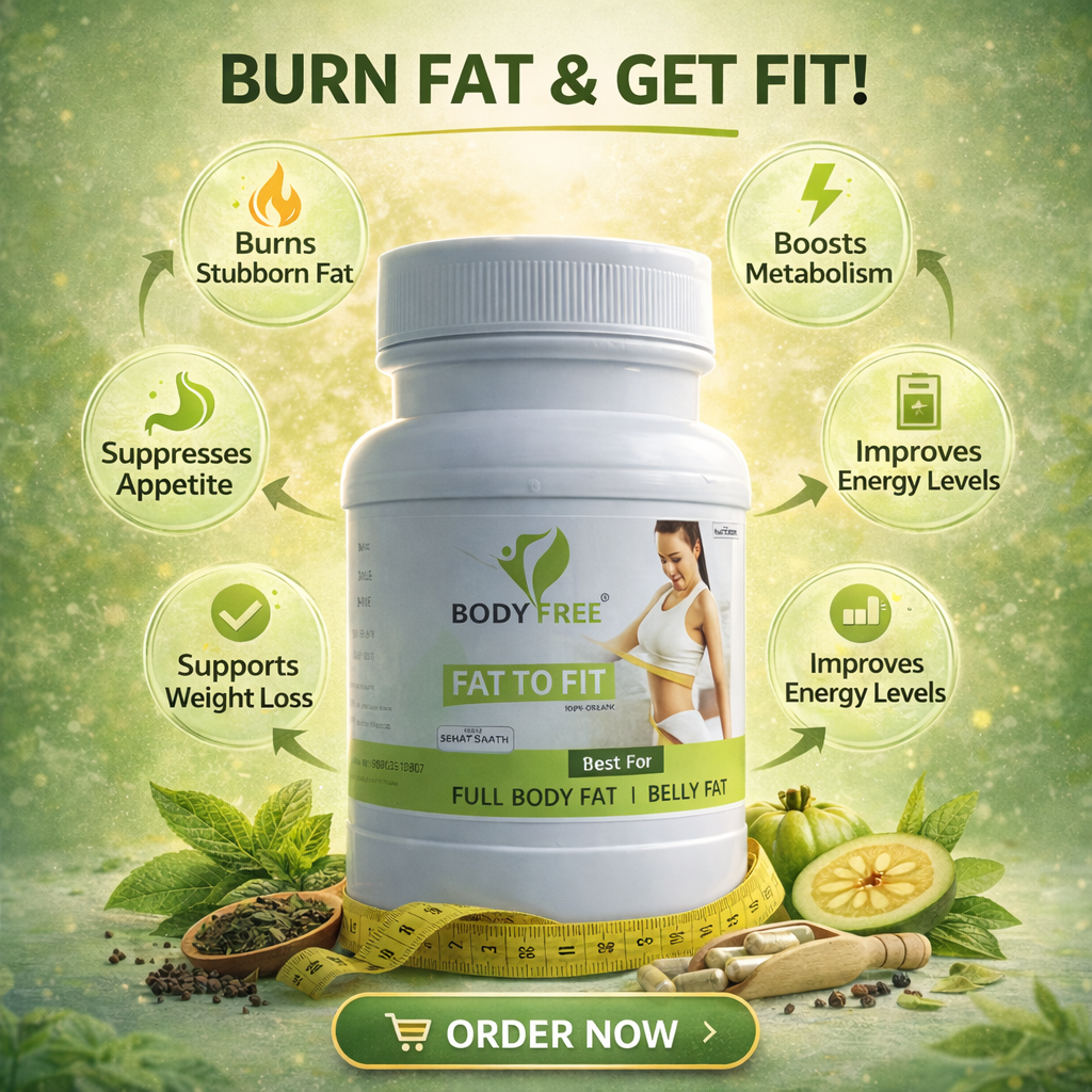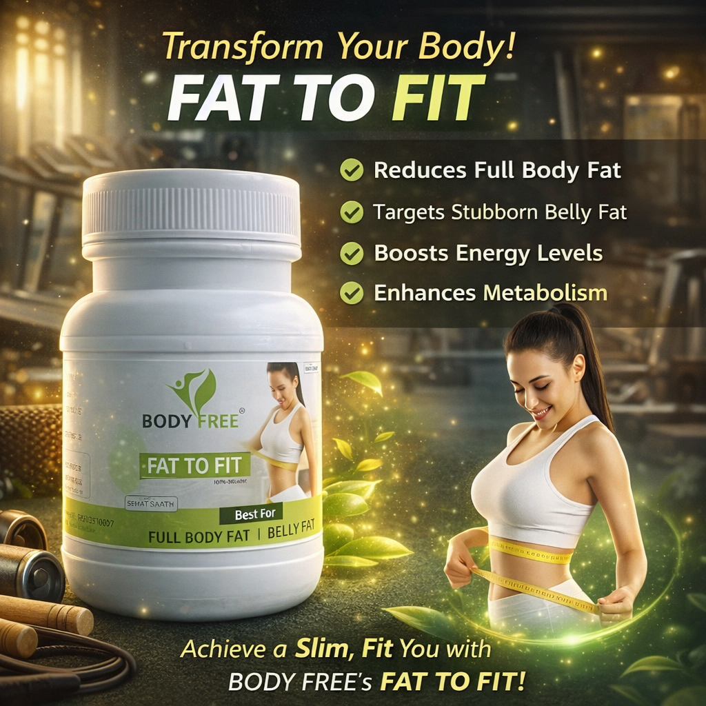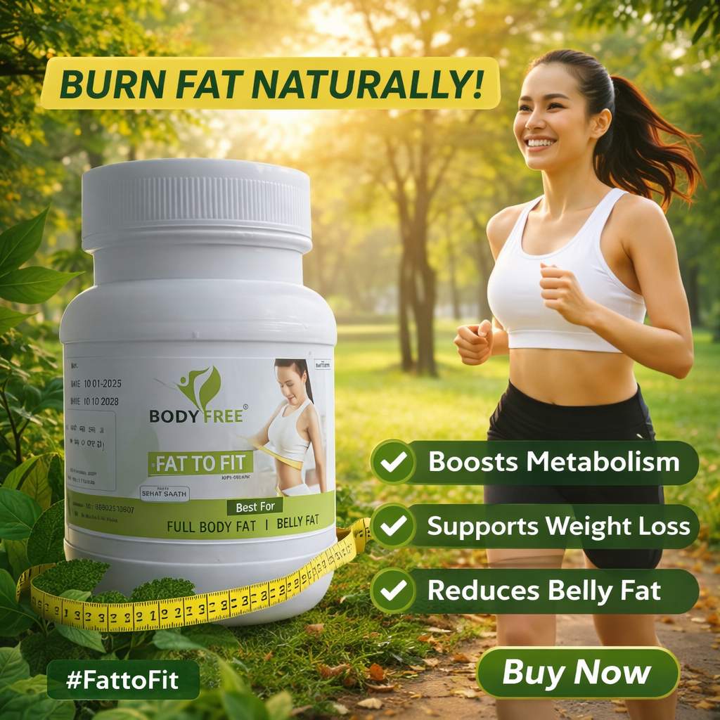 Body Free Fat To Fit is a trusted Ayurvedic formulation made from natural herbs. It helps burn stored fat, improve metabolism, control appetite, and shape the body naturally without weakness.